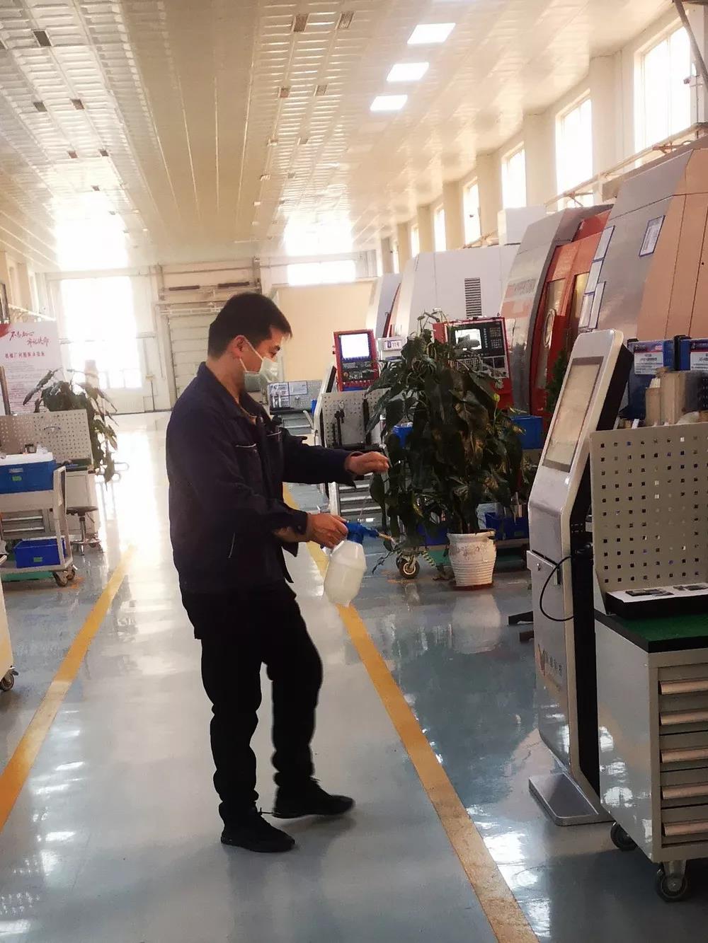 一機集團對出入人員進行體溫檢測;對各辦公場所、生產現場均利用消毒液進行消毒。同時積極開展測溫儀、體溫計、消毒液、紫外線消毒燈、防護口罩等物資籌備,做好假期后生產啟動準備。