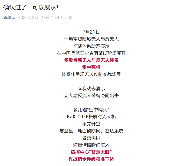 央視新聞客戶端:兵器工業集團陸域無人與反無人作戰體系震撼來襲!搶先看!2025-07-24