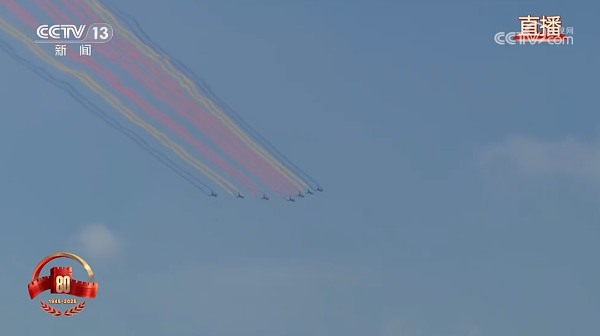 由殲10表演機(jī)發(fā)射的固體彩色發(fā)煙彈劃出14道彩煙,絢麗奪目、驚艷全場(chǎng),寓意著中華民族14年可歌可泣的抗戰(zhàn)歷程,象征著14億多中國(guó)人民奔向強(qiáng)國(guó)復(fù)興的絢麗前景。該型固體彩色發(fā)煙彈拉出的紅、黃、藍(lán)三種煙帶飽和鮮亮、形態(tài)穩(wěn)定、邊界清晰,滯空時(shí)間長(zhǎng)達(dá)數(shù)十秒不消散,同時(shí)安全環(huán)保、使用可靠、操作便捷。